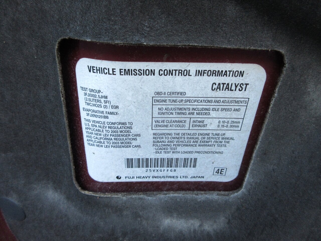 2.5L NA H4 single overhead cam (SOHC) 16V
